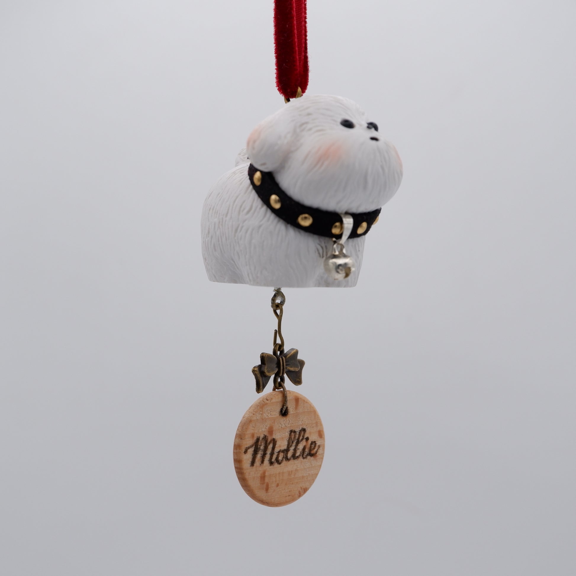Crafted from resin with a wood-like texture and soft, natural tones, each ornament is shaped to reflect the character of dogs across a variety of beloved breeds. A small wooden tag, engraved by hand with a name of your choice, adds a personal touch, making this a thoughtful gift for dog lovers, a personalised pet keepsake, or a cheerful addition to your Christmas decorations.