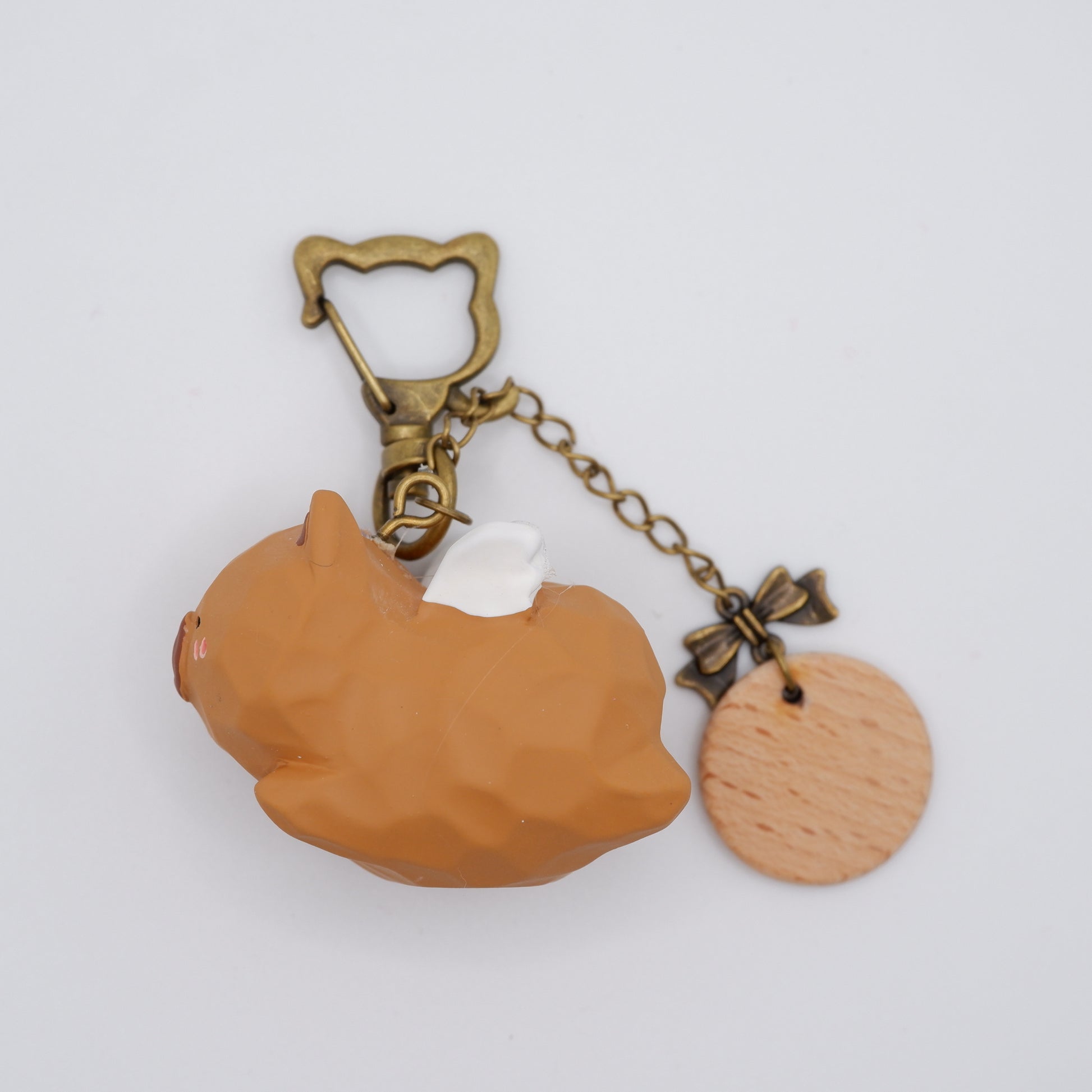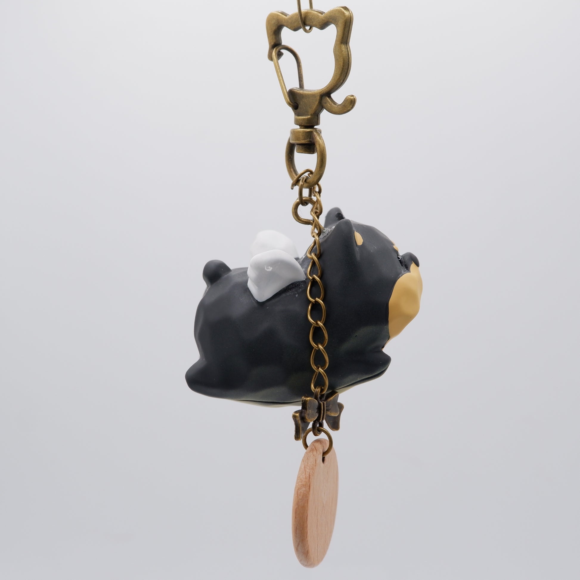 Crafted from resin with a wood-like texture and soft, natural colours, each figure, whether a capybara, cat, dog, bunny, or elephant, is shaped with care and lifted by a pair of delicate wings. A small wooden tag, engraved by hand with a name of your choice, adds a personal touch. Whether clipped to your keys, bag, or gifted to someone who loves animals with a touch of magic, this keychain brings a sense of lightness and delight wherever it goes.