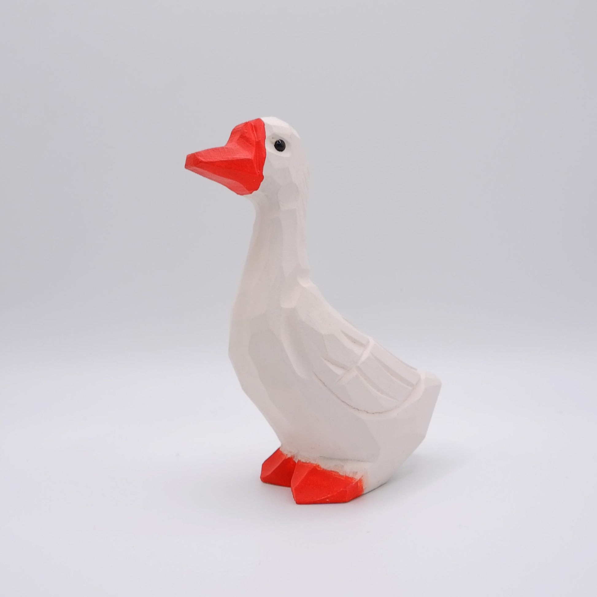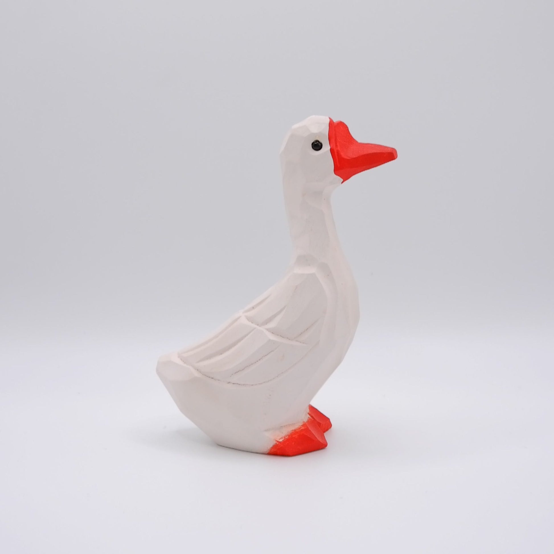 In the quiet fields beyond the hedgerow, a watchful goose stands with head held high, keeping an eye on the world and offering a honk or two when needed. Full of character and charm, this figure captures that spirit, observant, outspoken, and ever so endearing.